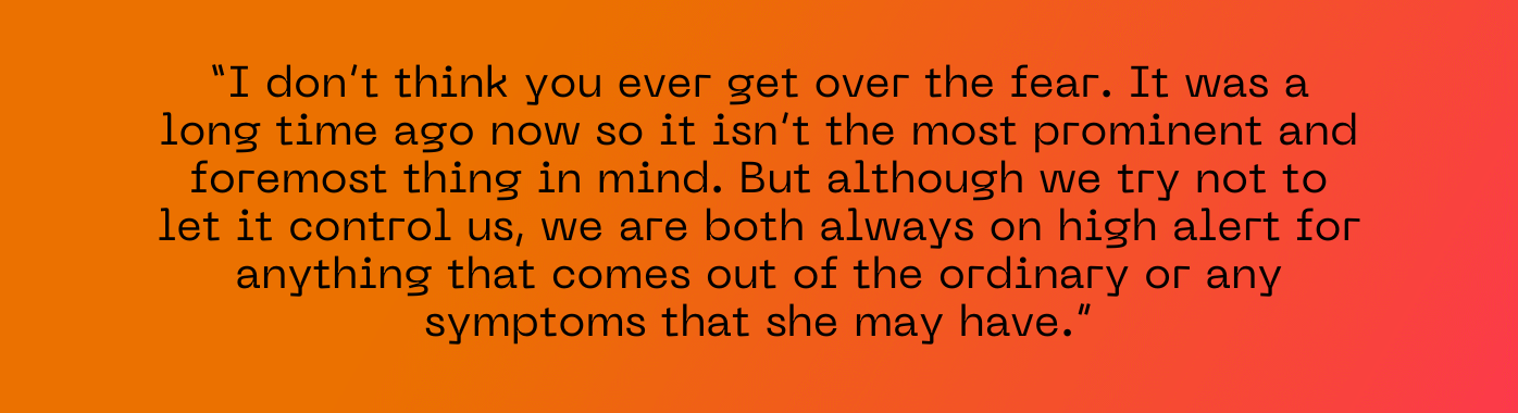 “As her mum, I am constantly worried of any relapse or anything else resurfacing because of her illness,” said Dawn. “It has had a huge impact on our lives. I don’t think you ever get over the fear. It was a long time ago so now it isn’t the most prominent and foremost thing in mind. But although we try not to let it control us, we are both always on high alert for anything that comes out of the ordinary or any symptoms that she may have. My hope is that Hannah stays happy and healthy and has a very long life. She has three wonderful children and a loving husband and is full of love, life and happiness.”
