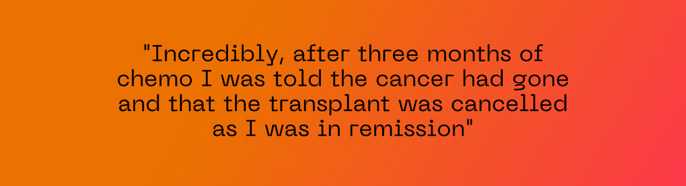 The second biopsy showed that Fred had approximately 1.5 litres of fluid in his chest cavity, pushing against his lungs. In August 2017 he was also given devastating diagnosis that at the age of 52 he had acute lymphoblastic leukaemia (ALL). ALL is most prevalent in the under-25s. Fred was told he had a 50/50 chance of survival, with very few statistics for his age group.