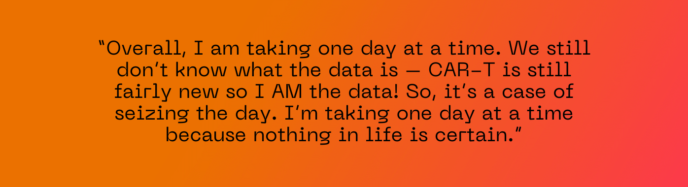 Lizzie’s chemotherapy was terminated but the good news was the Cancer Drugs Fund approved her for CAR-T and on 23rd February 2024 her T-cells were collected.