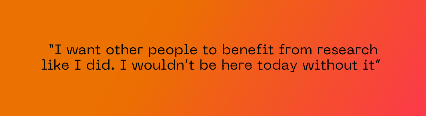 “I want other people to benefit from research like I did. I wouldn’t be here today without it.”