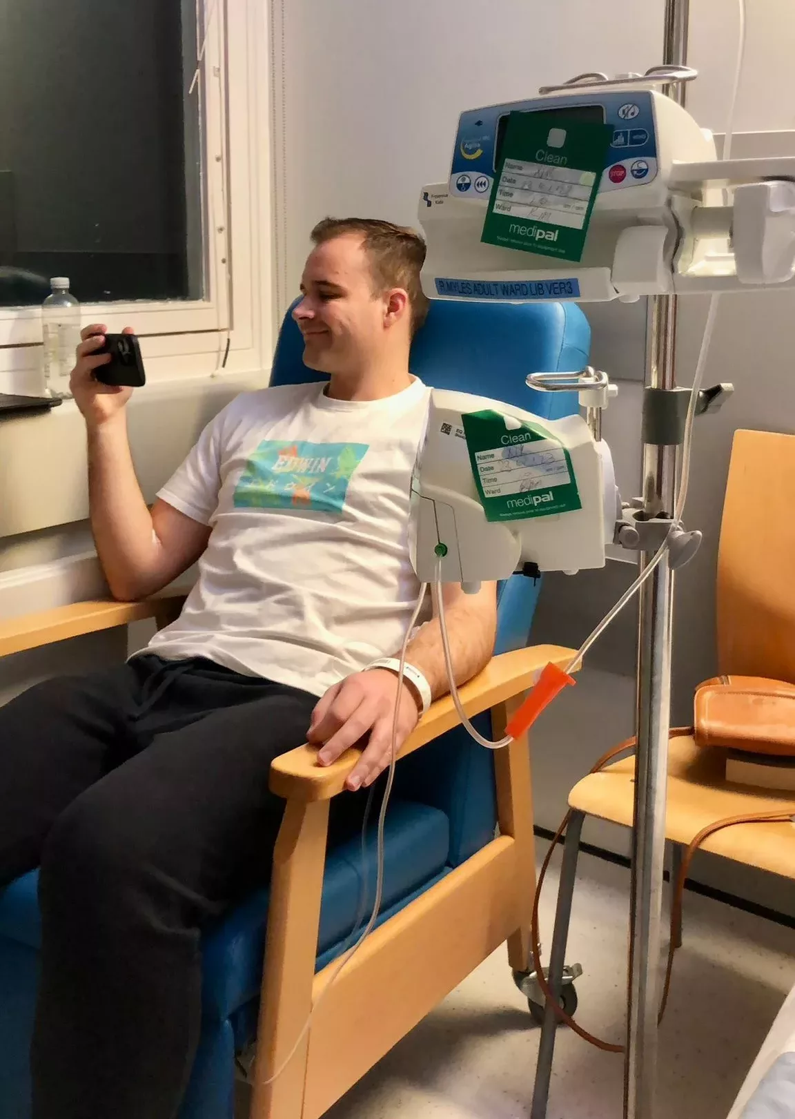 Joe spent two weeks in hospital having multiple tests for the impact the high viscosity in his blood had had on his body. He had a bone marrow biopsy, the results of which confirmed the type of leukaemia Joe has. Doctors also discovered he had haematomas or mini blood clots in his legs, and tiny haemorrhages in his eyes. Fortunately there was no lasting damage. He was also immediately put on the drug Hydroxycarbamide which brought his white blood cell count down. Within days he began to feel significantly better.