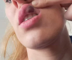 “The trainee was treating Edita’s upper lip and had applied a small amount of filler to the border of the lip,” said Dr Franks. “But after massaging, a swelling and bruising appeared on the left side of the body (main part) of the lip. This was a consequence of treatment I had personally not encountered before. It appeared rather abnormal that the swelling occurred in a site and position of the lip not associated with the injection site. My first thought was that perhaps too vigorous massaging had caused this, but on reflection the amount of massage and the appearance made me question whether this was the sole cause.