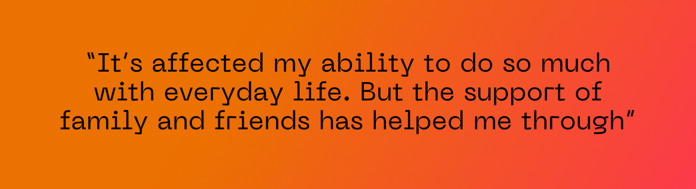 “The treatment has been OK, I’m just so grateful to the medical team for all they’ve done for me. I spent three weeks as an inpatient and the rest of my treatment has been as an outpatient. It’s been tough and a huge shock. It’s affected my ability to do so much with everyday life. But the support of family and friends has helped me through.”